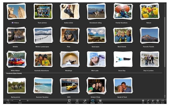 iPhoto gives you the ability to share your photos in many ways. For example, you can create slideshows or publish your photos on social networks like Twitter, Facebook. It is possible to create books, maps, calendars, quality prints.